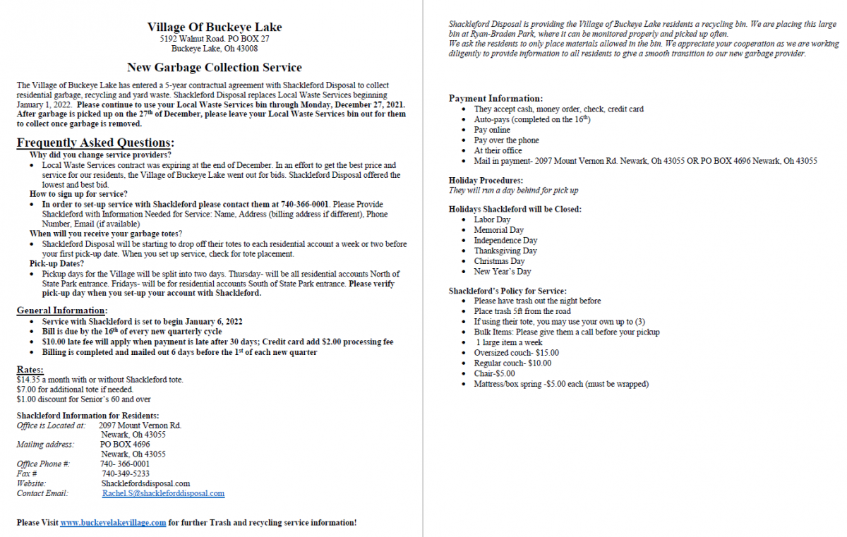 The following Utilities Companies provide service to the Village of Buckeye Lake community. Please contact them directly for assistance in obtaining these services for your home or business.